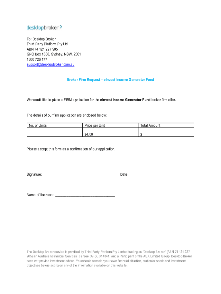 Get the free Broker Firm Request - Einvest Income Generator Fund