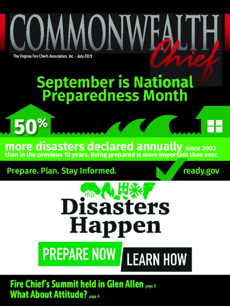 The Virginia Fire Chiefs Association, Inc. July 2019September is National Preparedness Month50%more disasters declared annually since 2003than in the previous 10 years. Being prepared is more important