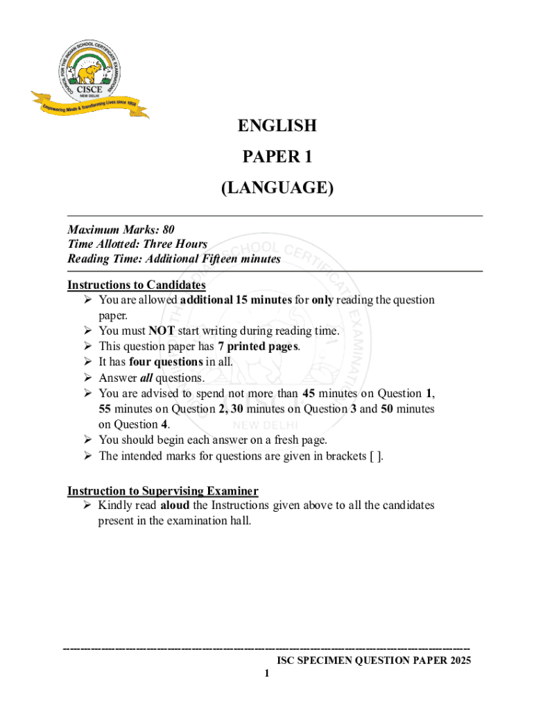Educational institutions offering the ISC curriculum are required to file the isc specimen question paper to receive approvals and guidelines from the examination council.