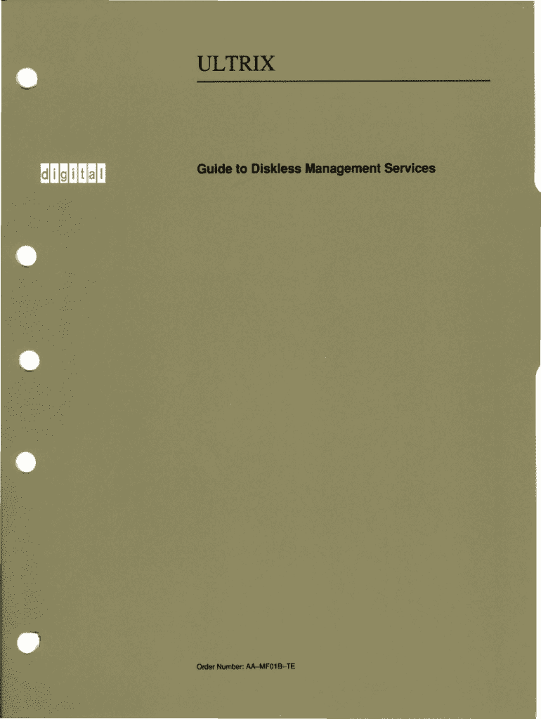 ULTRIXGuide to Diskless Management ServicesOrder Number: AAMF01 BTEULTRIXGuide to Diskless Management ServicesOrder Number: AAMF018TE June 1990Product Version:digital equipment corporation maynard,