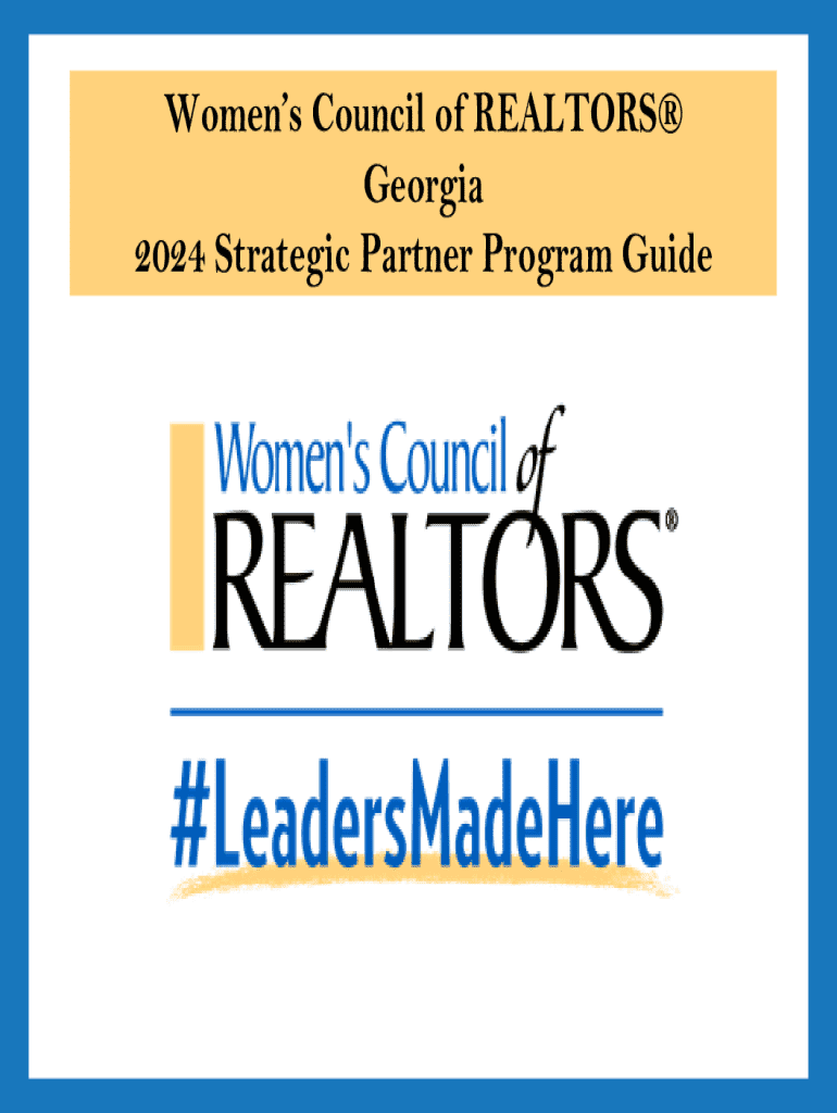 Womens Council of REALTORS Georgia 2024 Strategic Partner Program GuideWomens Council of REALTORS Georgia 2024 Calendar of EventsDear Strategic Business Partner, We are honored that you are considering