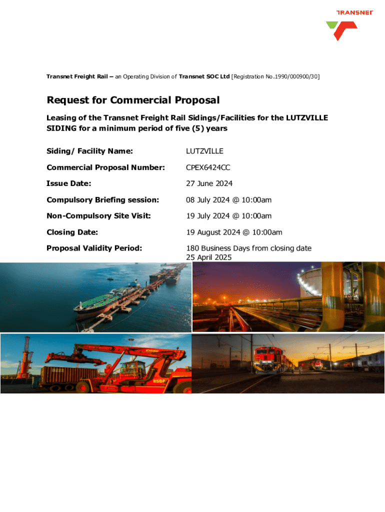 Transnet Freight Rail an Operating Division of Transnet SOC Ltd [Registration No.1990/000900/30]Request for Commercial Proposal Leasing of the Transnet Freight Rail Sidings/Facilities for the LUTZVILLE