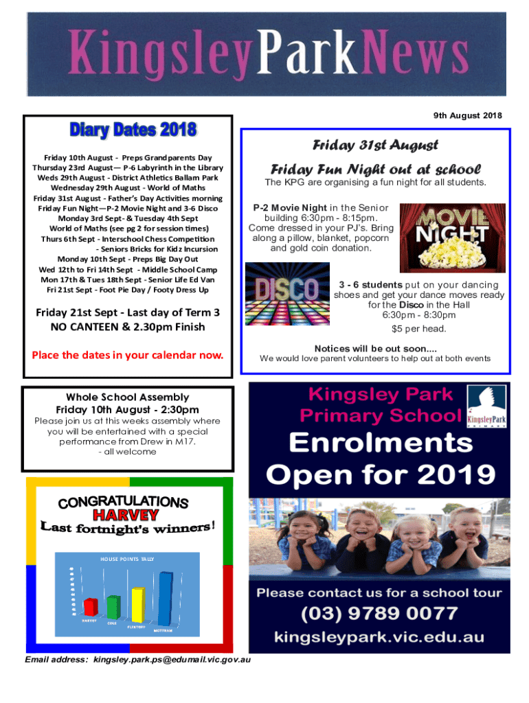 9th August 2018Friday 31st August Friday 10th August Preps Grandparents Day Thursday 23rd August P6 Labyrinth in the Library Weds 29th August District Athletics Ballam Park Wednesday 29th August World