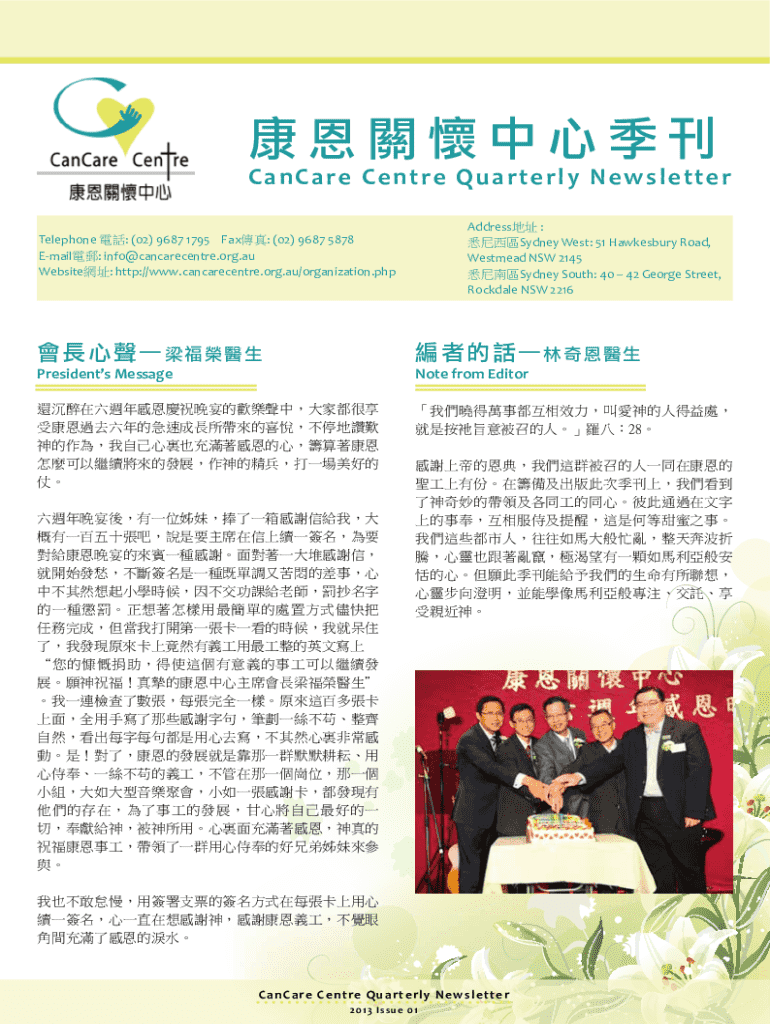 C anC ar e Ce n t r e Qua r te r l y N e w s le t t e r Address : Sydney West: 51 Hawkesbury Road, Westmead NSW 2145 Sydney South: 40 42 George Street, Rockdale NSW 2216Telephone : (02) 9687 1795