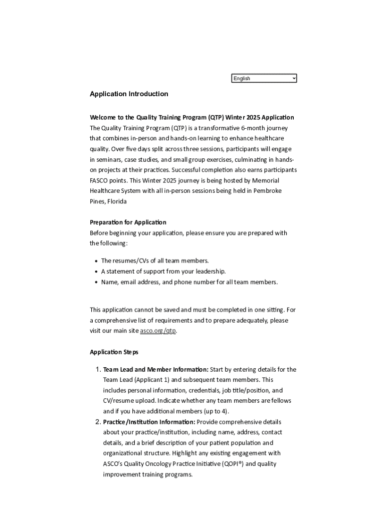 Get the free Quality Training Program Winter 2025 Application