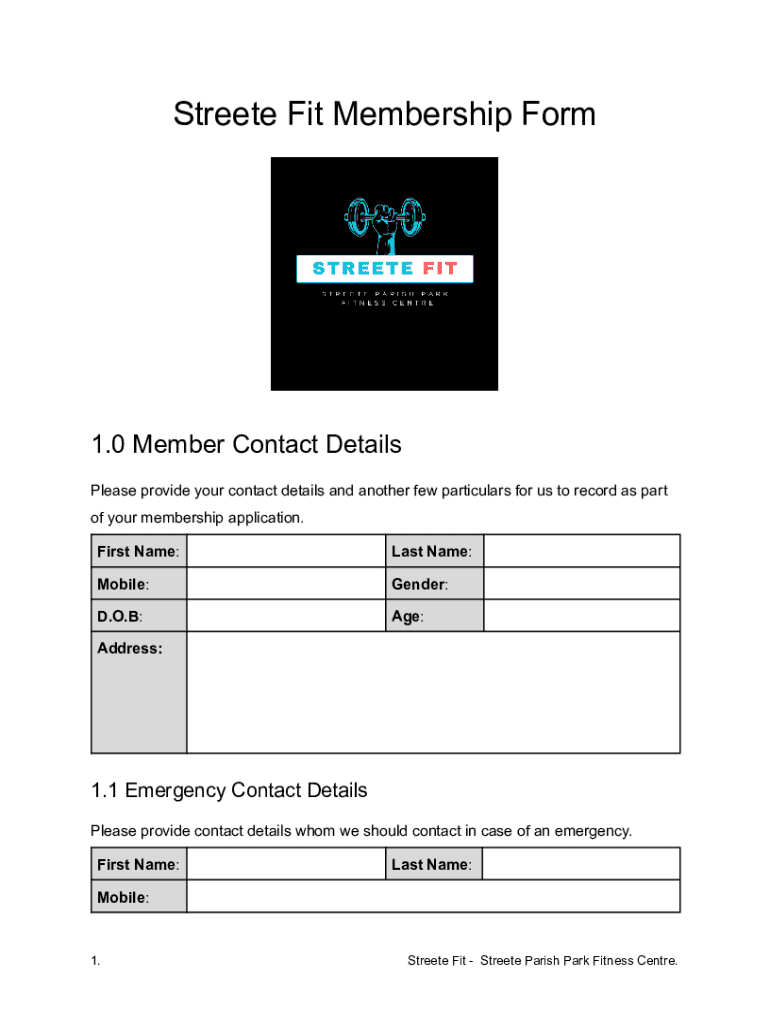Edit your streete fit membership form form online
