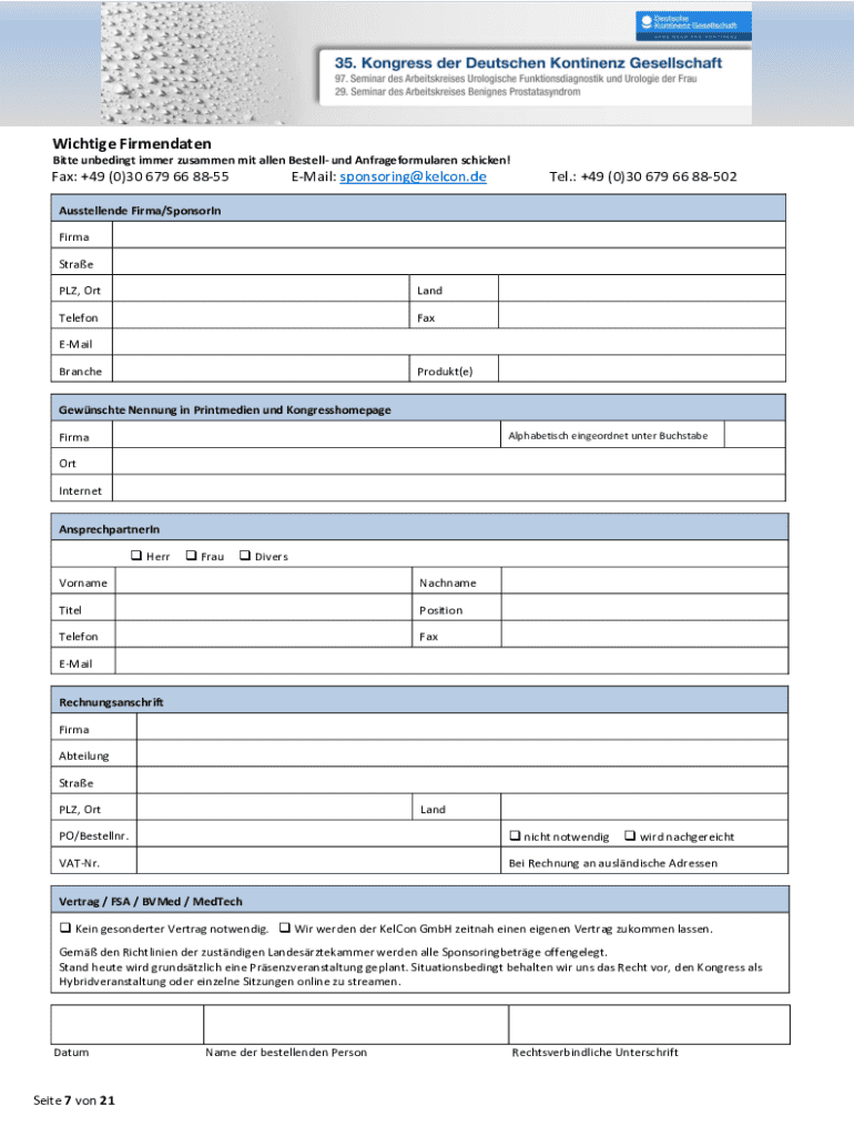 Ausstellungs und Sponsoringunterlagen Seite 1 von 21Allgemeine Informationen Veranstaltende Organisation des wissenschaftlichen KongressesKongressprsidentenDeutsche Kontinenz Gesellschaft e.V. Friedrichstrae
