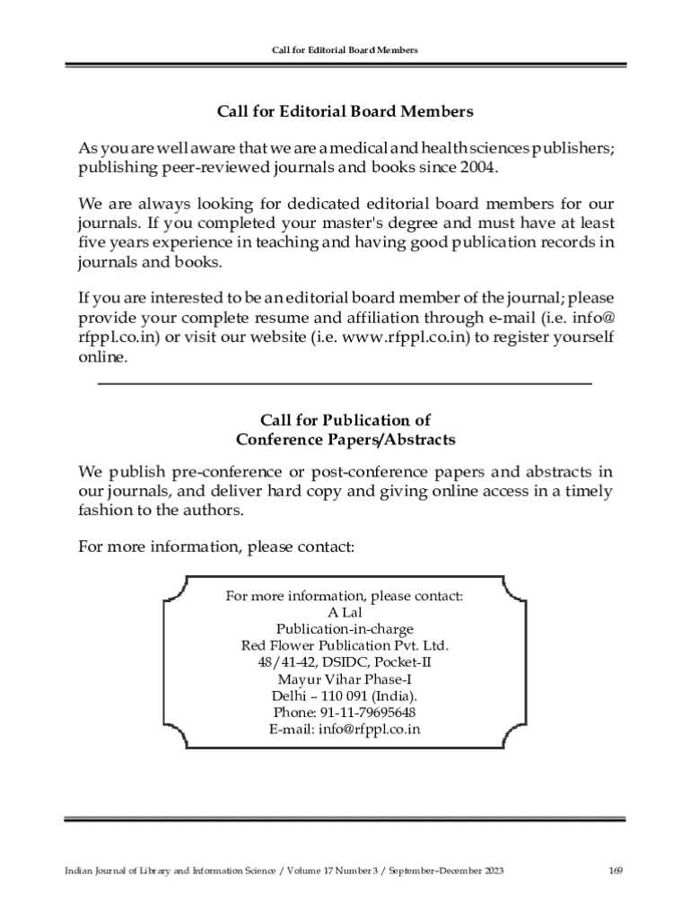 Call for Editorial Board MembersCall for Editorial Board Members As you are well aware that we are a medical and health sciences publishers; publishing peerreviewed journals and books since 2004.