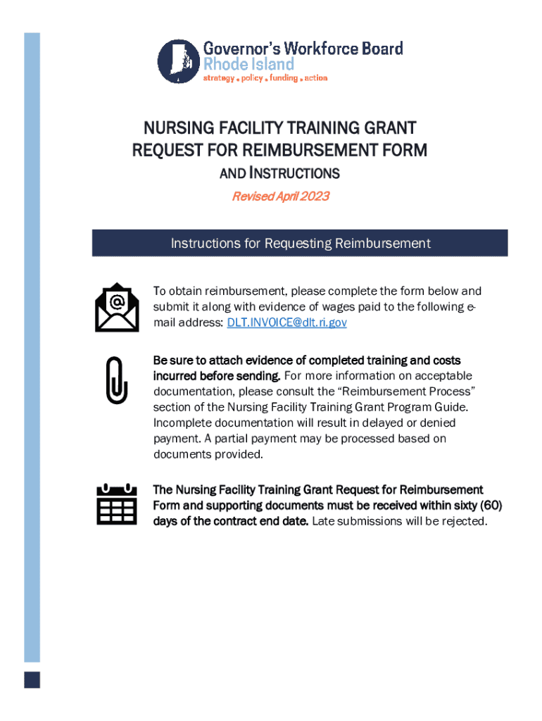 Get the free Nursing Facility Training Grant Request for Reimbursement Form - gwb ri