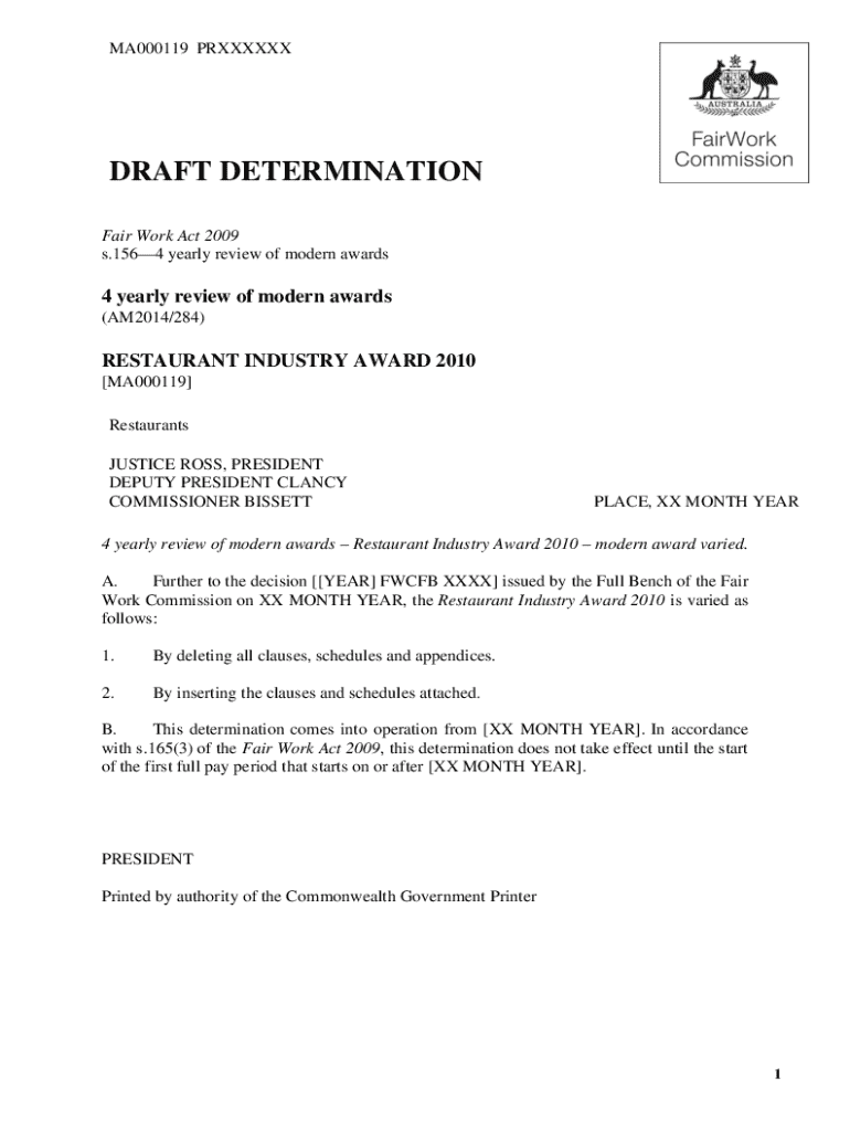 To fill out the restaurant industry award, employers need to gather necessary employee information, refer to the specific award provisions, and complete the required sections accurately, ensuring compliance with wage and entitlements requirements.