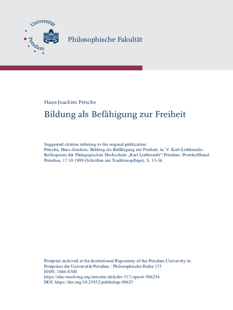 Holen Sie sich kostenlos Bildung als Befhigung zur Freiheit - publish.UP - publishup uni-potsdam