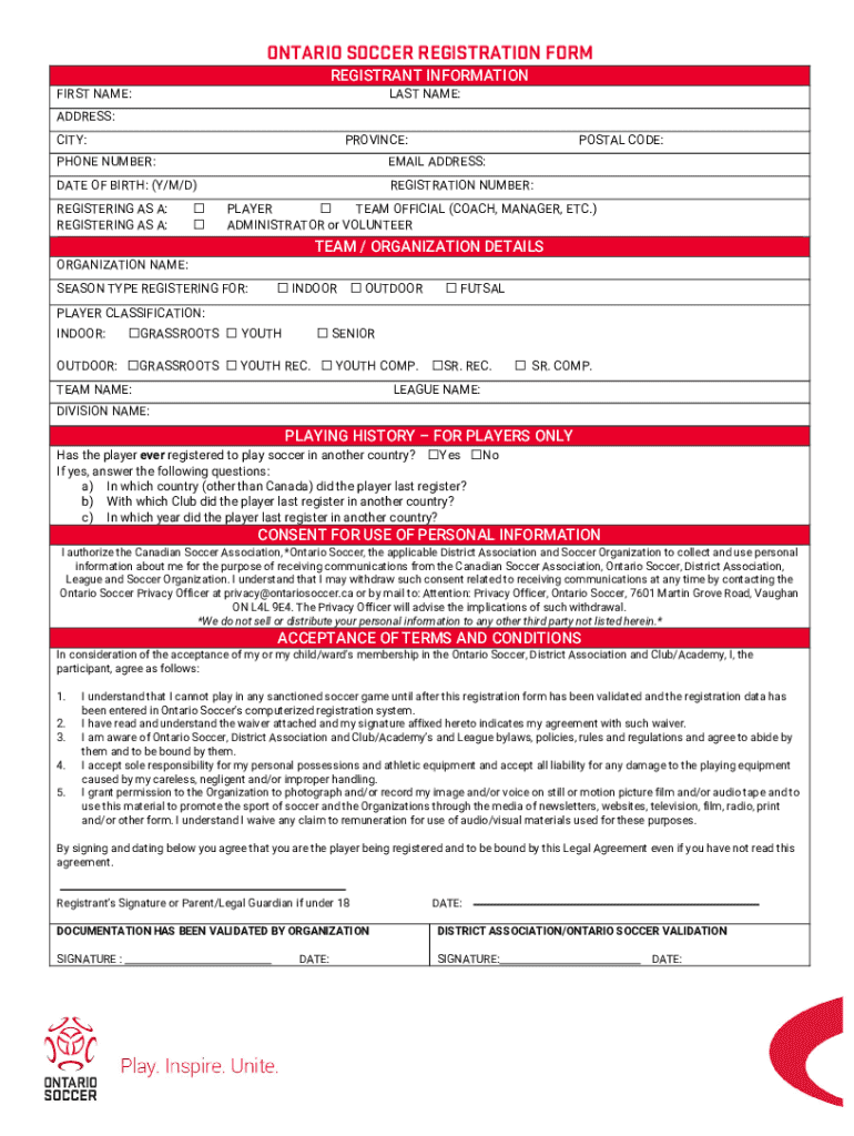 Online Ontario Soccer Registration is not the form you're looking for?Search for another form here.