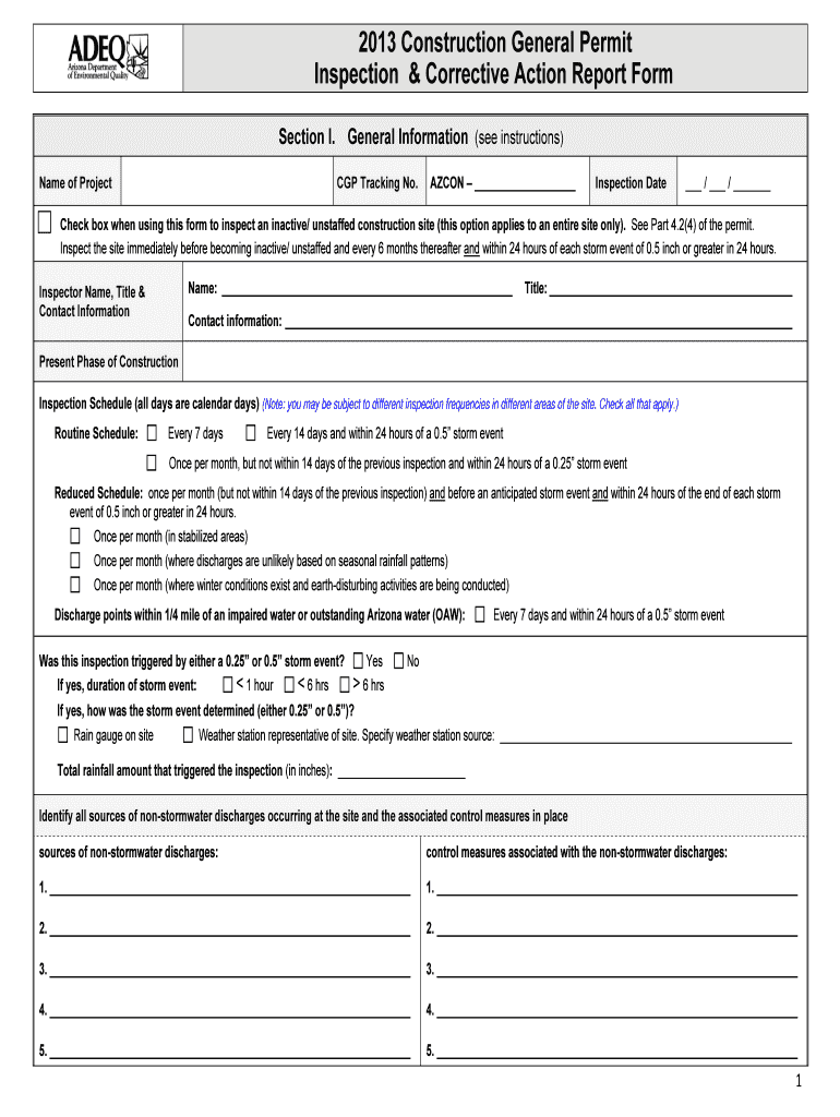 Corrective action reports for ADEPT#39’s 2013 Construction General Permit ... ii. Rain gauge or weather station readings if your inspection is triggered by ... PDF version of the form, available