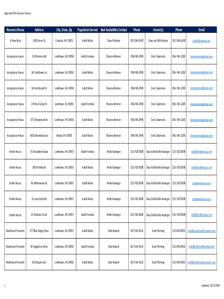 Get the free Approved Sca Recovery Houses