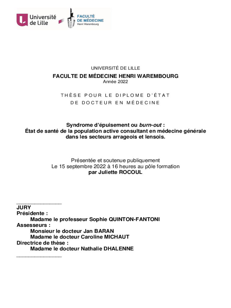 UNIVERSIT DE LILLEFACULTE DE MDECINE HENRI WAREMBOURG Anne 2022 THSE POUR LE DIPLOME DTAT DE DOCTEUR EN MDECINESyndrome dpuisement ou burnout : tat de sant de la population active consultant en mdecine