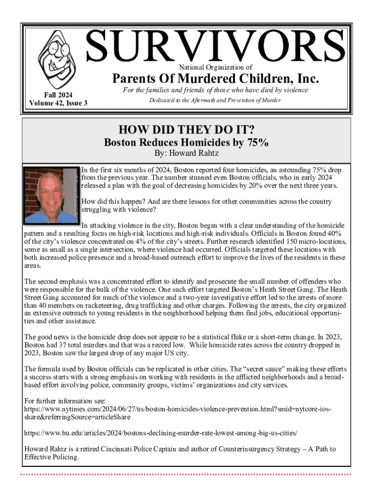 National Organization ofParents Of Murdered Children, Inc. Fall 2024 Volume 42, Issue 3For the families and friends of those who have died by violence Dedicated to the Aftermath and Prevention of