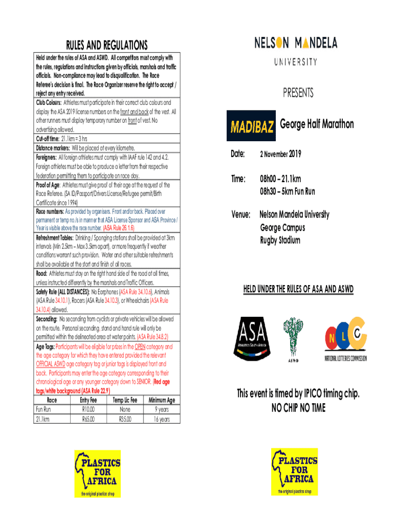 All participants intending to compete in the Nelson Mandela University Madibaz George Half Marathon are required to file this entry form.