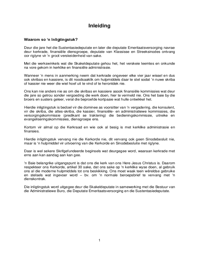 Inleiding Waarom so n Inligtingstuk? Deur die jare het die Sustentasiedeputate en later die deputate Emeritaatsversorging navrae deur kerkrade, finansile diensgroepe, deputate van Klassisse en Streeksinodes