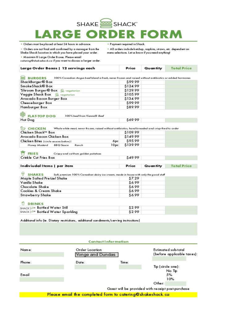 Get the free 12Shake Shack Canada Large Order Form Sept16