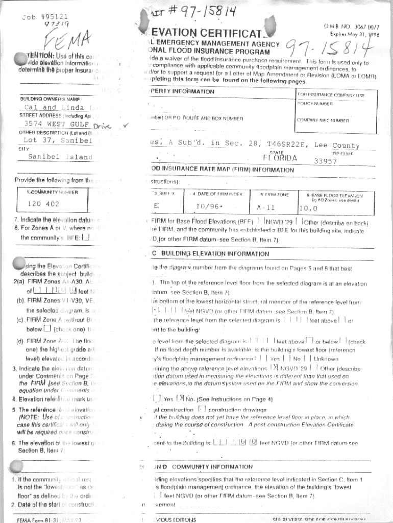 tEVATIONe)y 73/9 7 ! S8 l Lfr ## 95121JobOCERTIFICAT..L EMERGENCY MANAGEMENT AGENCYTir.ifI0rusofblevatiorrsidethisc,31, /ide a waiver of the flood Insurance purchase requirement. This form Is used