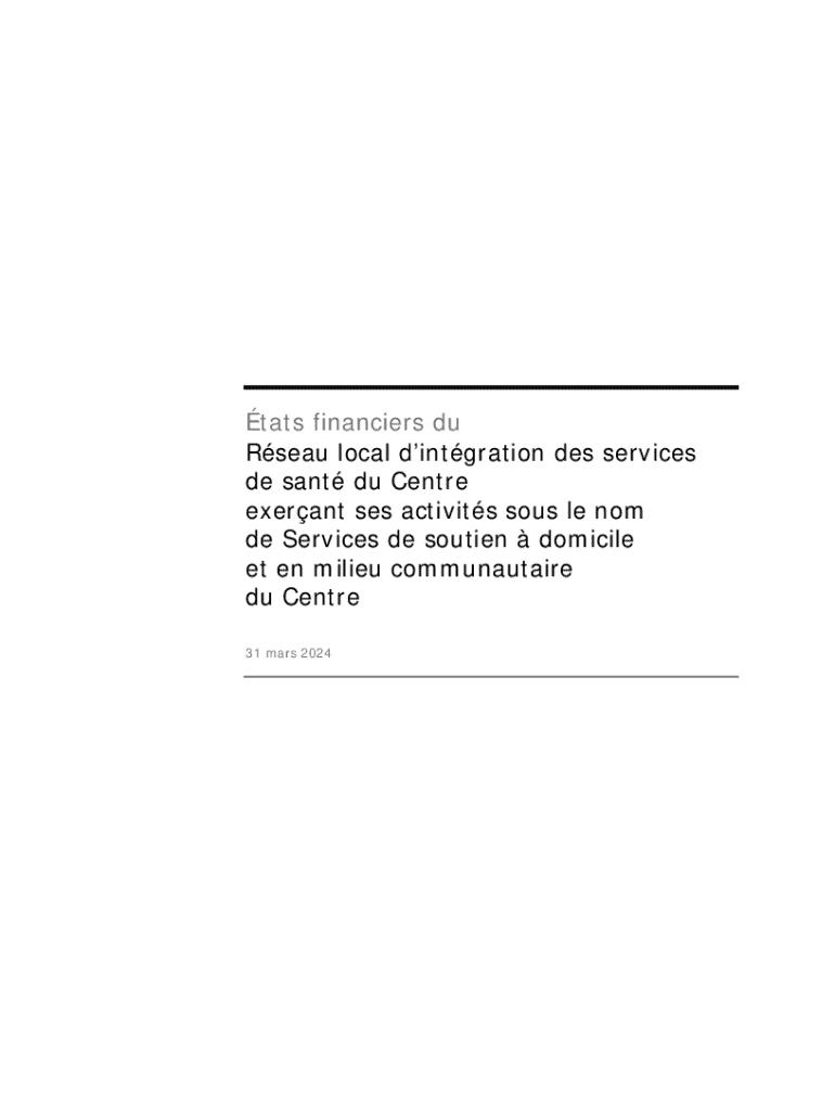 tats financiers du Rseau local dintgration des services de sant du Centre exerant ses activits sous le nom de Services de soutien domicile et en milieu communautaire du Centre 31 mars 2024Rapport