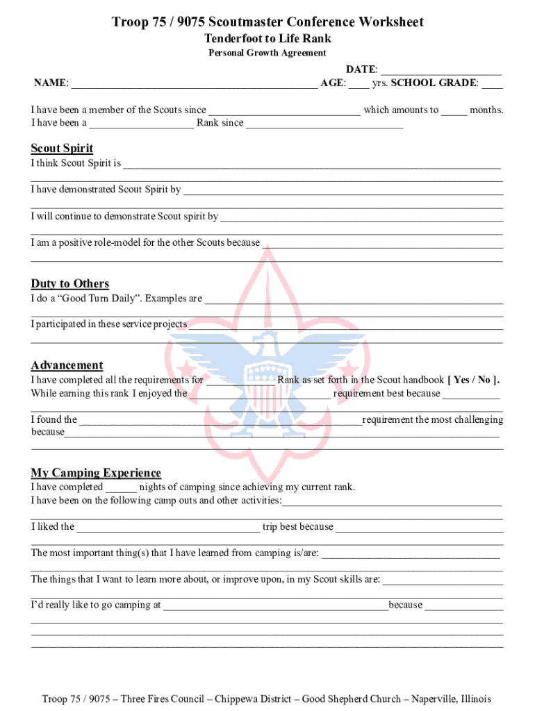 Get the free Troop 75 / 9075 Scoutmaster Conference Worksheet