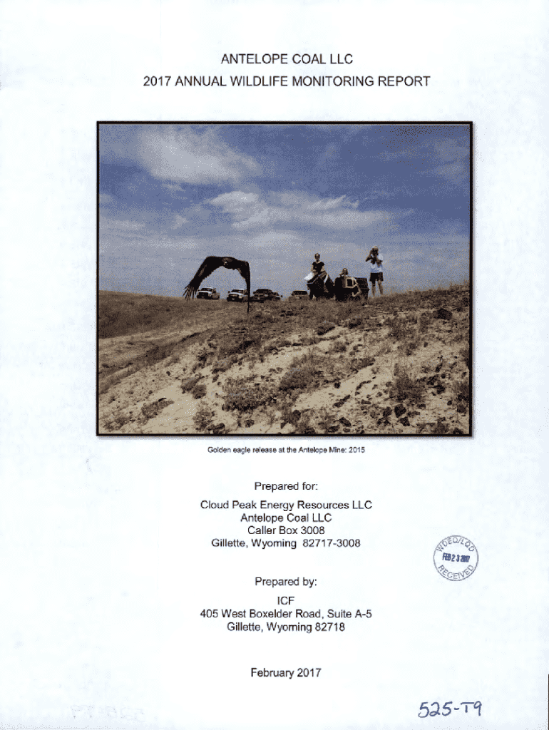 ANTELOPE COAL LLC 2017 ANNUAL WILDLIFE MONITORING REPORTGolden eagle release at the Antelope Mine: 2015Prepared for: Cloud Peak Energy Resources LLC Antelope Coal LLC Caller Box 3008 Gillette, Wyoming
