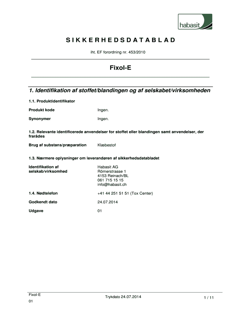 SIKKERHEDSDATABLAD IHT. EF forbidding NR. 453/2010 File 1. Identification AF staffed/landing OG AF selskabet/virksomheden 1.1. Produktidentifikator Product code Inge. Synonym her Inge. 1.2. Relevant