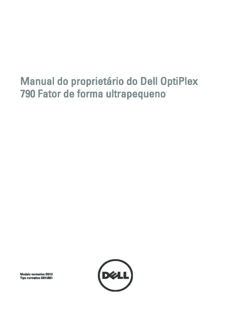 Manual do proprietrio do Dell OptiPlex 790 Fator de forma ultrapequenoModelo normativo D01U Tipo normativo D01U001Notas, Avisos e Advertncias NOTA: uma NOTA fornece informaes importantes para ajudar