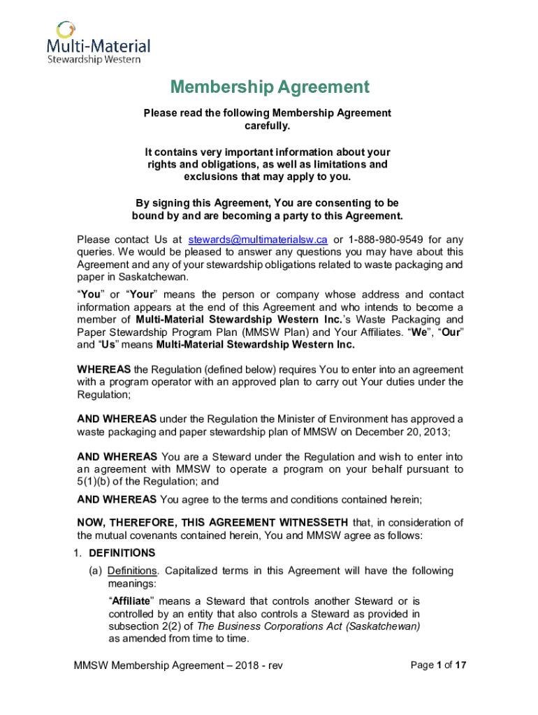 Membership Agreement Please read the following Membership Agreement carefully. It contains very important information about your rights and obligations, as well as limitations and exclusions that