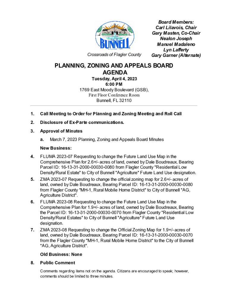 Crossroads of Flagler CountyBoard Members: Carl Lilavois, Chair Gary Masten, CoChair Nealon Joseph Manuel Madaleno Lyn Lafferty Gary Garner (Alternate)PLANNING, ZONING AND APPEALS BOARD AGENDA Tuesday,