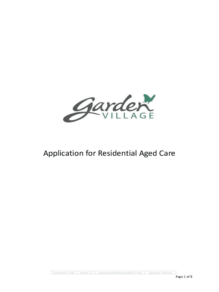 Get the free Application for Residential Aged Care