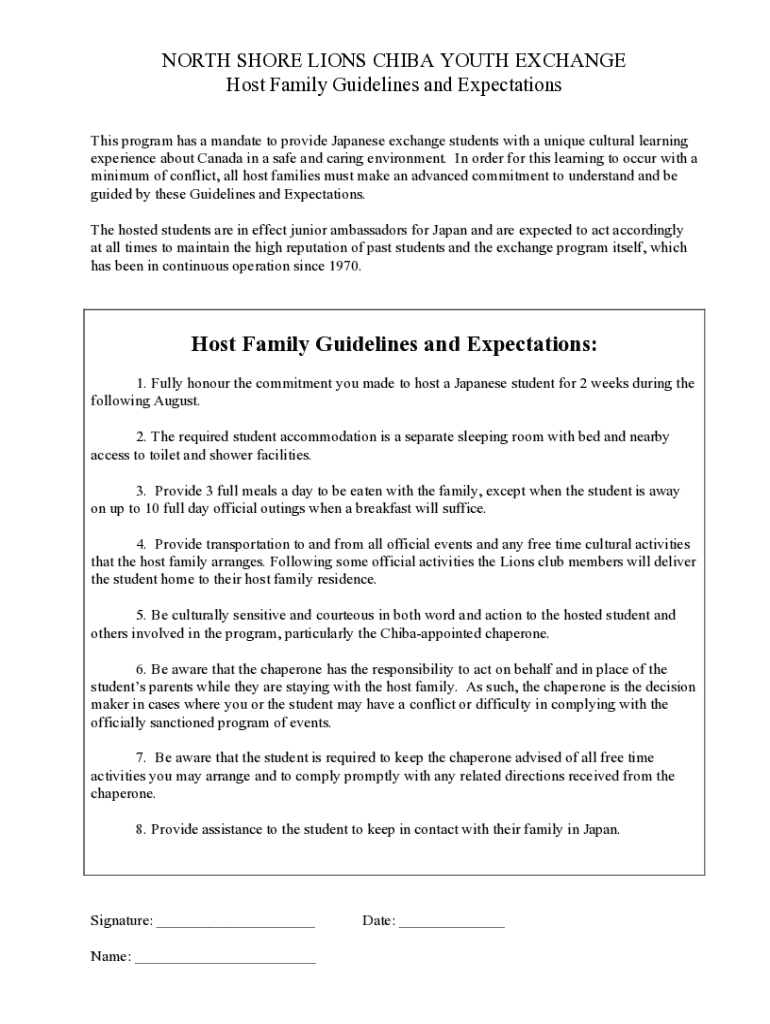 Get the free NORTH SHORE LIONS CHIBA YOUTH EXCHANGE Host Family ...