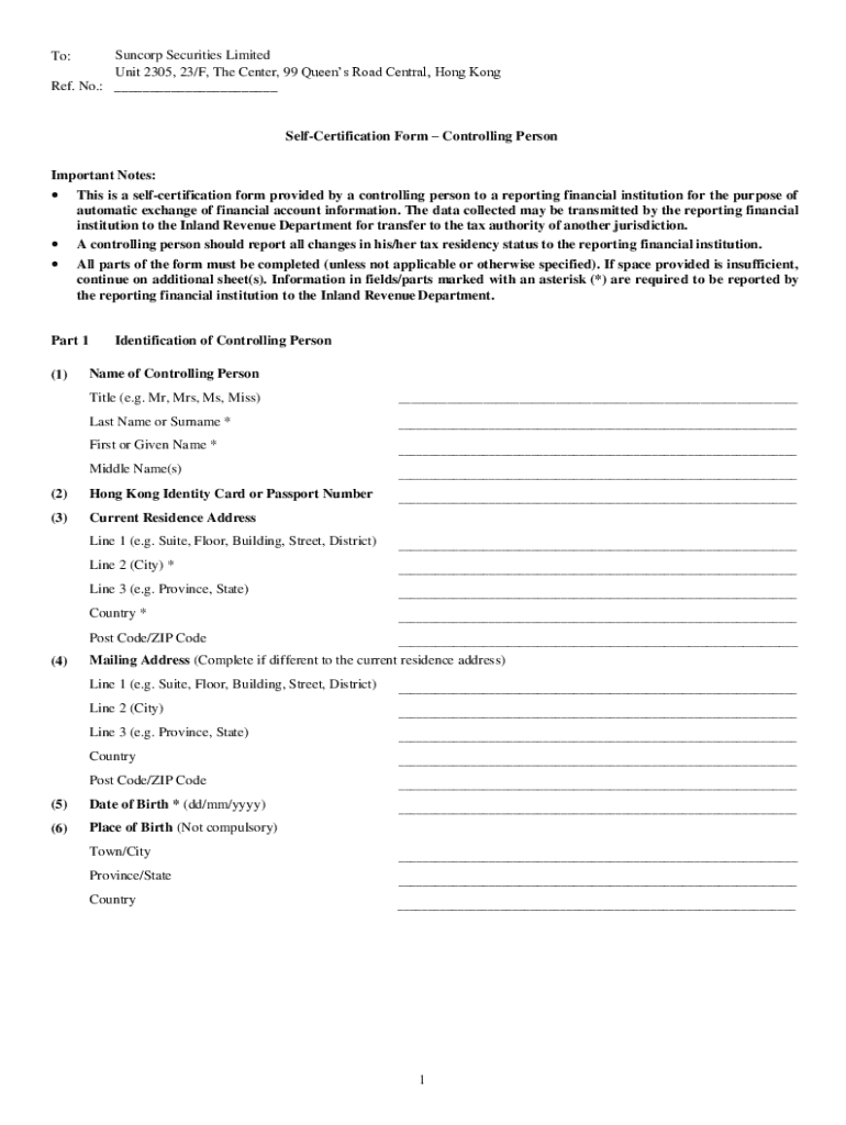 Get the free Self-certification Form – Controlling Person