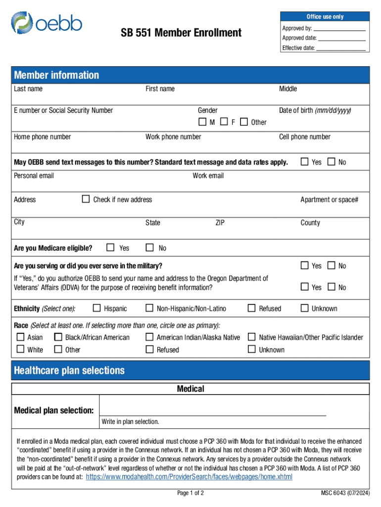 Get the free Sb 551 Member Enrollment