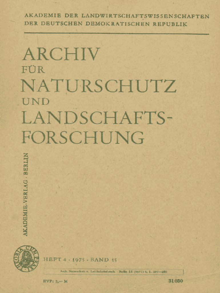 AKADEMIE DER LANDWIRTSCHAFTSWISSENSCHAFTEN DER DEUTSCHEN DEMOKRATISCHEN REPUBLIARCHIV FRNATURSCHUTZ (UNDLANDSCHAFTSFORSCHUNG1IEFT 4 1975 BAND 15 Ash. Ntunchotz u. landx:h,uu/:n,ch. Bulin 16 (1975)