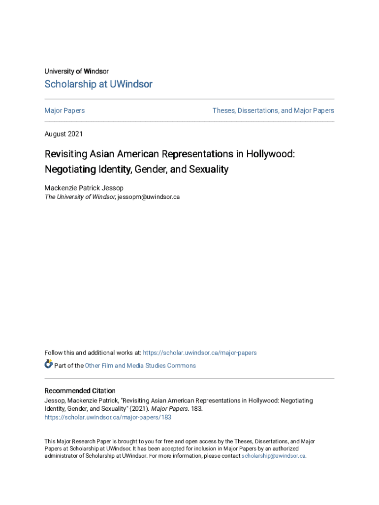 University of WindsorScholarship at UWindsor Major PapersTheses, Dissertations, and Major PapersAugust 2021Revisiting Asian American Representations in Hollywood: Negotiating Identity, Gender, and