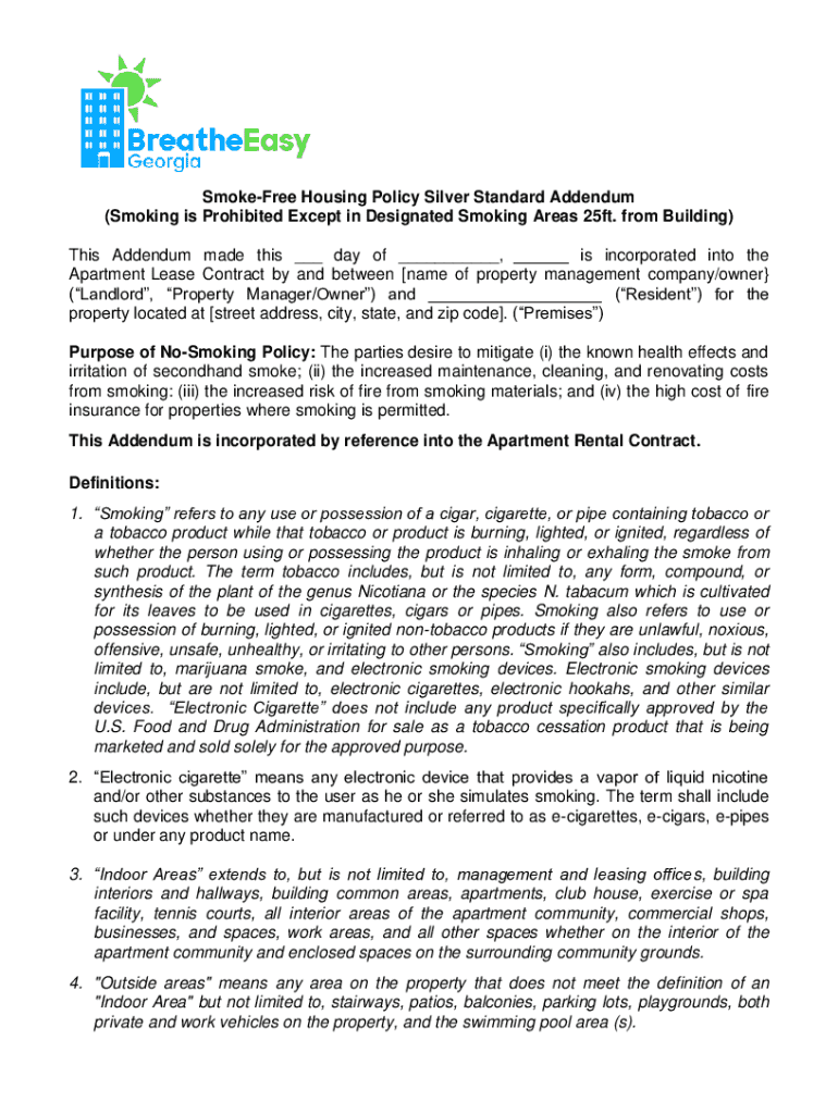 SmokeFree Housing Policy Silver Standard Addendum (Smoking is Prohibited Except in Designated Smoking Areas 25ft. from Building) This Addendum made this ___ day of ___, ___ is incorporated into the