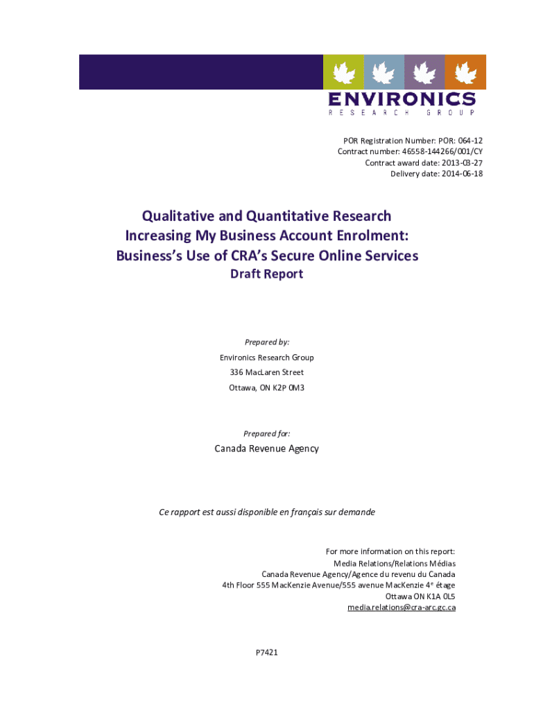 POR Registration Number: POR: 06412 Contract number: 46558144266/001/CY Contract award date: 20130327 Delivery date: 20140618Qualitative and Quantitative Research Increasing My Business Account Enrolment:
