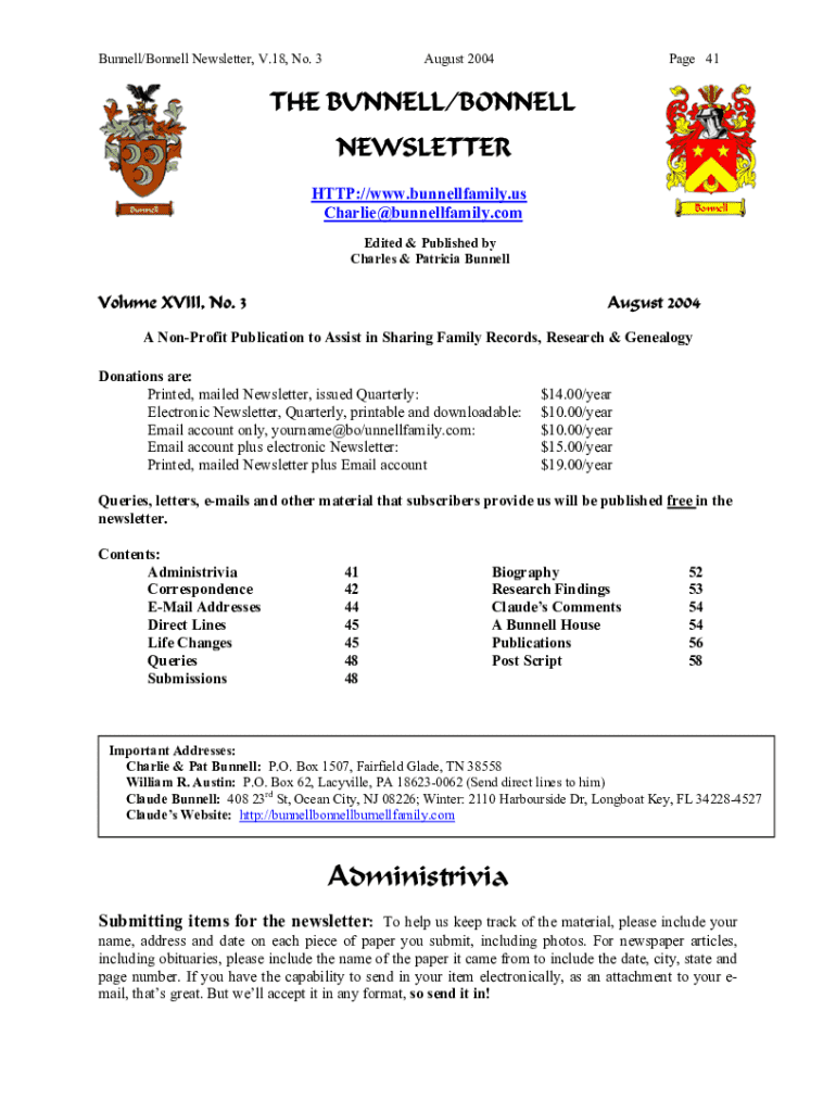 Bunnell/Bonnell Newsletter, V.18, No. 3August 2004Page 41THE BUNNELL/BONNELL NEWSLETTER HTTP://www.bunnellfamily.us Charlie@bunnellfamily.com Edited & Published by Charles & Patricia BunnellVolume