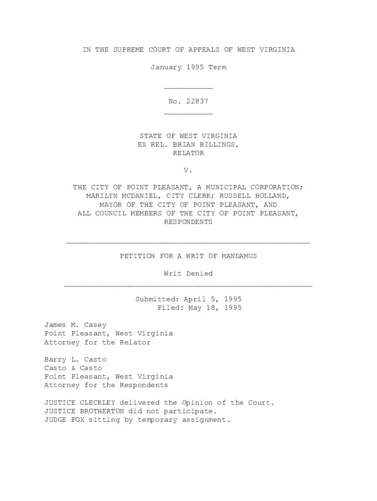 Get the free Brian Billings V. City of Point Pleasant