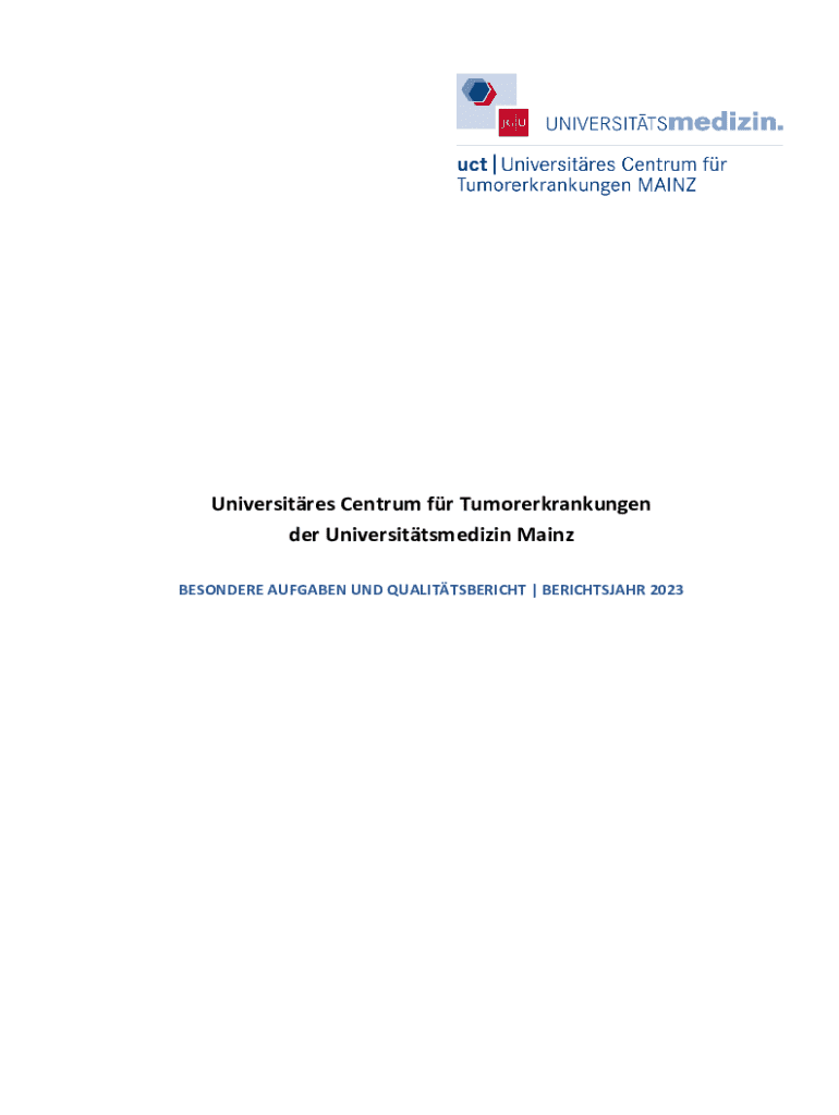 Universitres Centrum fr Tumorerkrankungen der Universittsmedizin Mainz BESONDERE AUFGABEN UND QUALITTSBERICHT | BERICHTSJAHR 2023Vorwort Dieser Bericht wird im Rahmen der Regelungen des GBA zur Konkretisierung