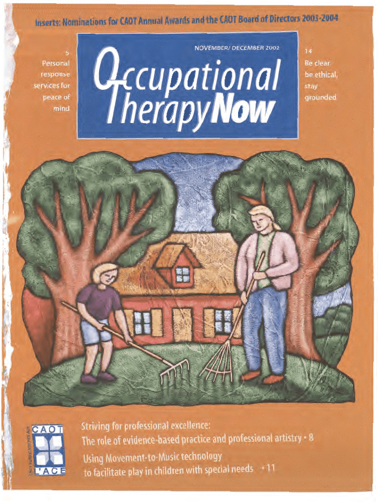 Inserts: Nominations for CAOT Annual Awards and the CAOT Board of Directors 20032004Occupational Therapy Now is published six times a year, (bimonthly beginning with January) by the Canad ia n Association