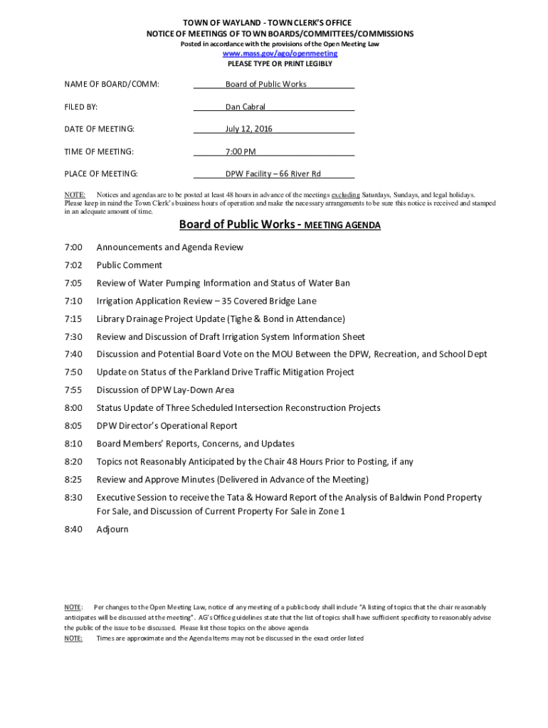 Get the free Notice of Meetings of Town Boards/committees/commissions