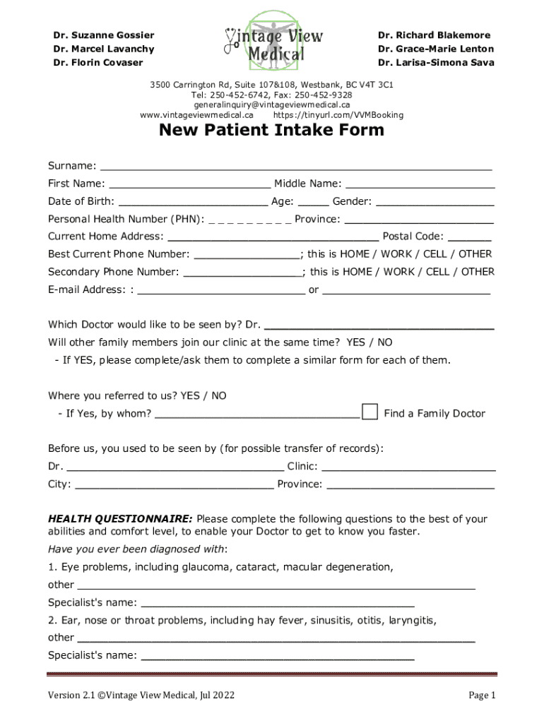 Dr. Suzanne GossierDr. Richard BlakemoreDr. Marcel LavanchyDr. GraceMarie LentonDr. Florin CovaserDr. LarisaSimona Sava3500 Carrington Rd, Suite 107&108, Westbank, BC V4T 3C1 Tel: 2504526742, Fax: