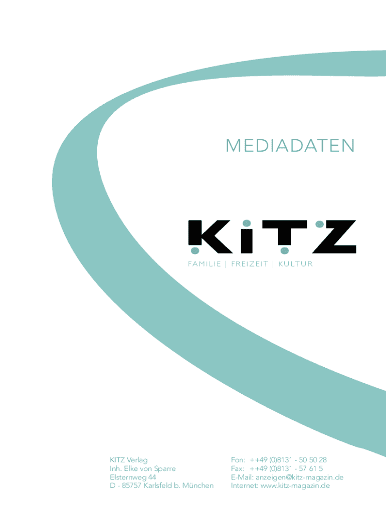 MEDIADATENF A M I L I E | F R E I Z E I T | K U LT U RKITZ Verlag Inh. Elke von Sparre Elsternweg 44 D 85757 Karlsfeld b. MnchenFon: ++49 (0)8131 50 50 28 Fax: ++49 (0)8131 57 61 5 EMail: anzeigen@kitzmagazin.de