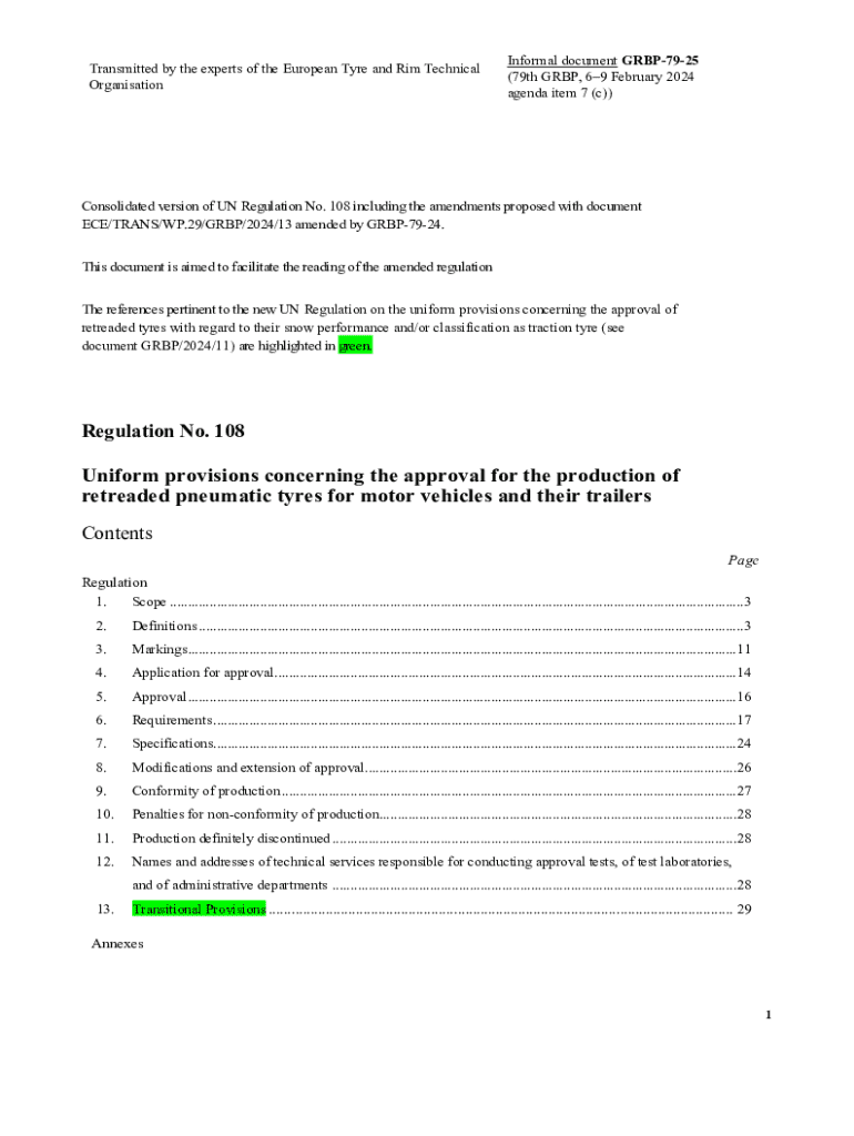 Transmitted by the experts of the European Tyre and Rim Technical OrganisationInformal document GRBP7925 (79th GRBP, 69 February 2024 agenda item 7 (c))Consolidated version of UN Regulation No. 108