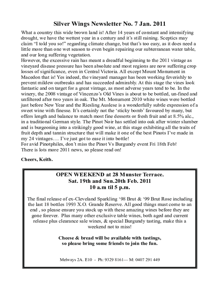 This newsletter provides an overview of recent events in winemaking, highlights significant weather impacts on vineyards, shares updates on wine vintages, offers tasting events, and explores dining experiences in France. It includes personal anecdotes and discussions on the merits of wine aging and cellaring, along with promotions for various wines available for purchase.