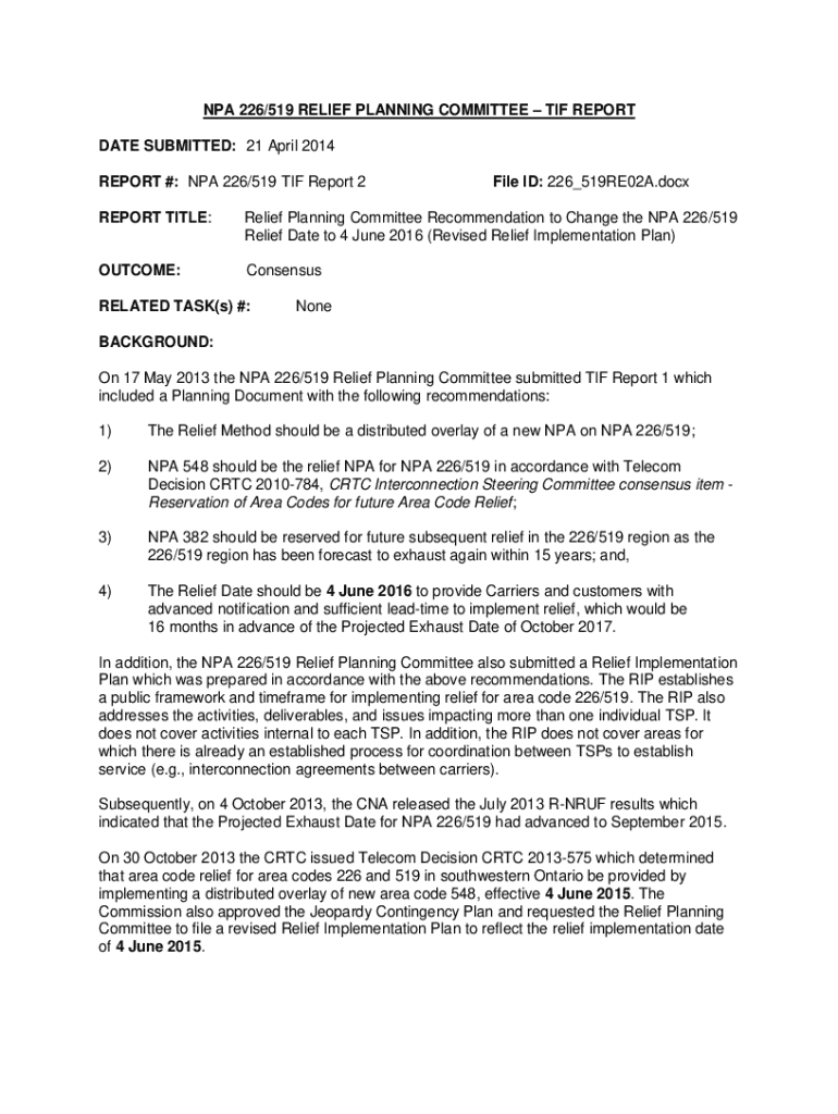 Get the free Npa 226/519 Relief Planning Committee – Tif Report