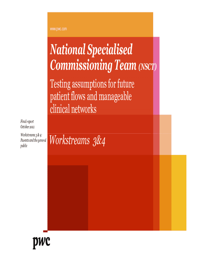 www.pwc.comNational Specialised Commissioning Team (NSCT) Testing assumptions for future patient flows and manageable clinical networks Final report October 2011 Workstreams 3 & 4: Parents and the